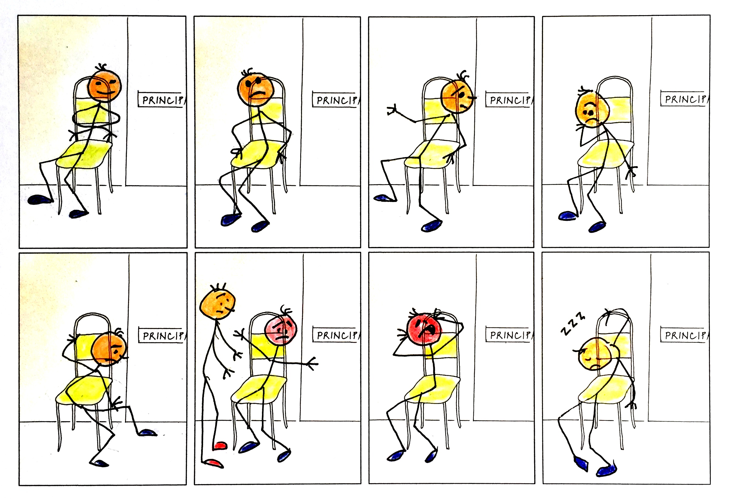 Joe sat outside the Principal’s Office describes a closed event in the SIMPLE PAST TENSE; he might have sat down then got straight up and ran away. On the other hand, Joe was sitting outside the Principal’s Office suggests a longer wait, perhaps a wait during which something else might happen, someone else might join him: