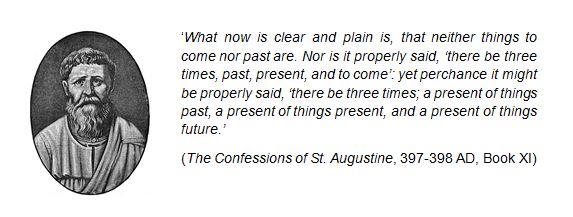 Of course I am not the first person to point this out. St Augustine (354 – 430 AD) believed that PAST and FUTURE are mere components of the PRESENT, so he referred to the PAST as the EXPERENTIAL PRESENT and the FUTURE as the PRESENT OF FUTURE THINGS: